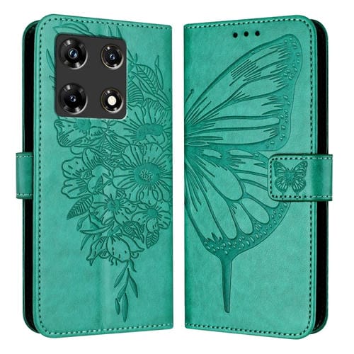 Funda de Cuero para Infinix Note 30 Pro y Note 30 5G con Mariposa en Relieve (Verde)