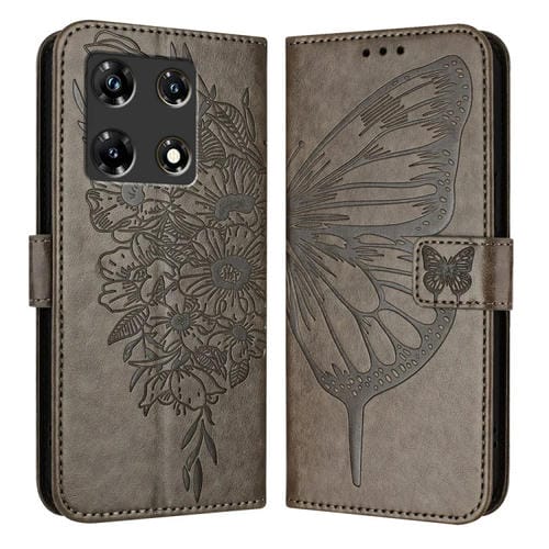 Funda de Cuero para Infinix Note 30 Pro y Note 30 5G con Mariposa en Relieve (Gris)