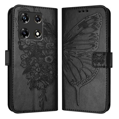 Funda de Cuero para Infinix Note 30 Pro y Note 30 5G con Mariposa en Relieve (Negro)