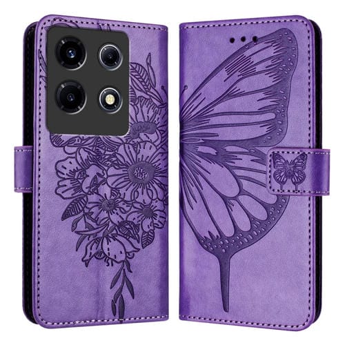 Funda de Cuero para Infinix Note 30 Vip con Mariposa en Relieve (Púrpura Claro)
