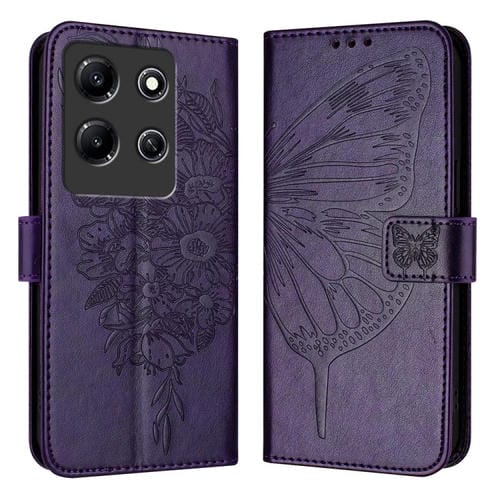 Funda de Cuero para Infinix Note 30I con Mariposa en Relieve (Púrpura Oscuro)