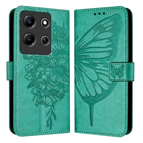 Funda de Cuero para Infinix Note 30I con Mariposa en Relieve (Verde)