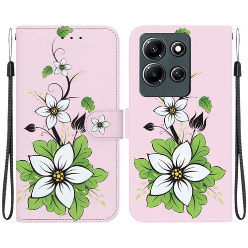 Funda de Cuero para Infinix Note 30I con Dibujo Coloreado y Textura de Cristal (Lirio)
