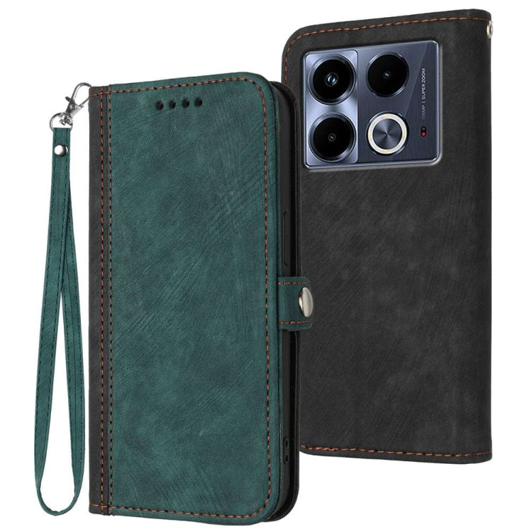 Pour Infinix Note 40 4G Étui de téléphone en cuir avec dragonne à double pli et boucle latérale (vert foncé)