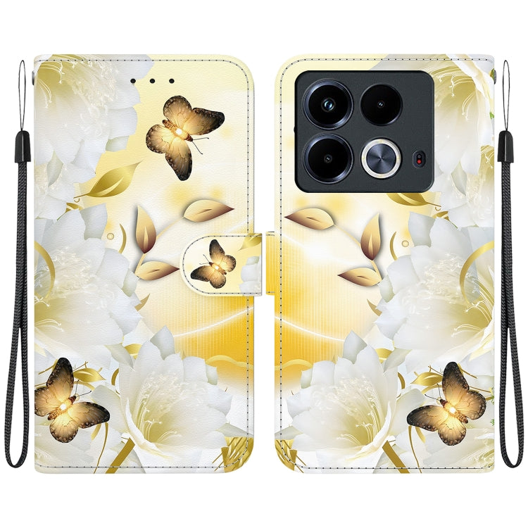 Funda de Cuero para Infinix Note 40 4G con Dibujo Coloreado y Textura de Cristal (Epiphyllum Mariposa Dorada)