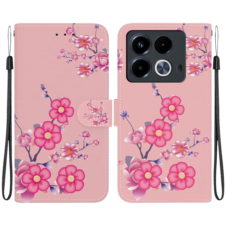 Funda de Cuero para Infinix Note 40 4G con Dibujo Coloreado y Textura de Cristal (Flores de Cerezo)