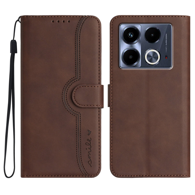 Pour Infinix Note 40 4G Étui de téléphone en cuir à motif de cœur (marron)