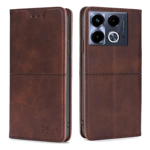 Funda de Cuero Magnético para Infinix Note 40 4G con Textura de Vaca (Marrón Oscuro)