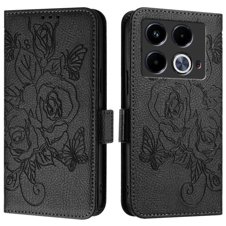 Funda de Cuero Antirrobo RFID para Infinix Note 40 5G con Relieve Rosa (Negro)