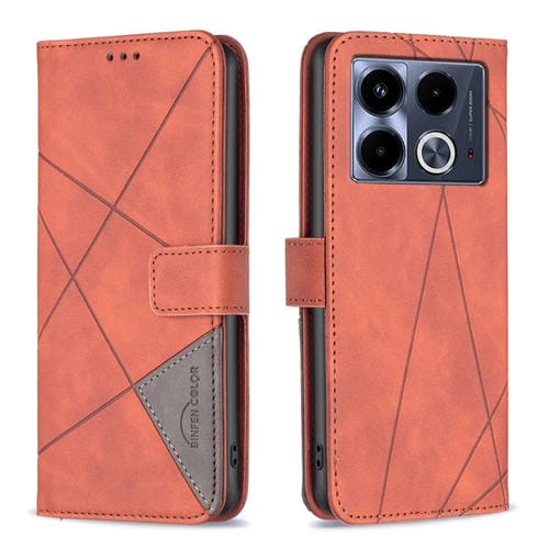 Funda para Infinix Note 40 5G de Cuero con Textura de Rombo y Hebilla Magnética (Marrón)
