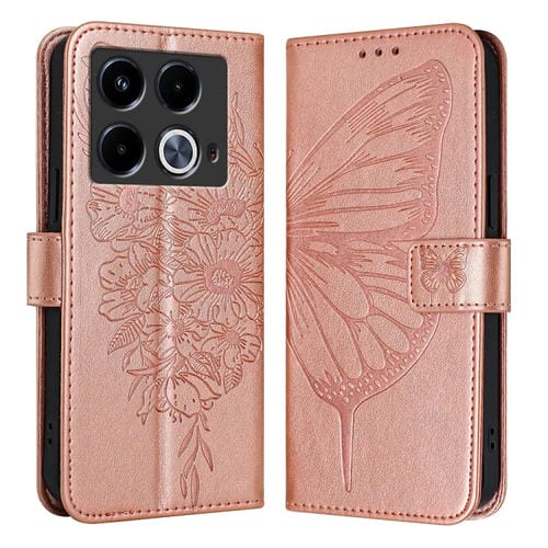 Funda de Cuero para Infinix Note 40 con Mariposa en Relieve (Oro Rosa)