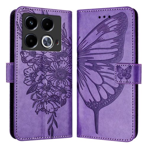 Funda de Cuero para Infinix Note 40 con Mariposa en Relieve (Púrpura Claro)