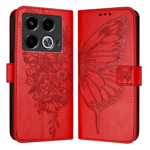 Funda de Cuero para Infinix Note 40 con Mariposa en Relieve (Rojo)