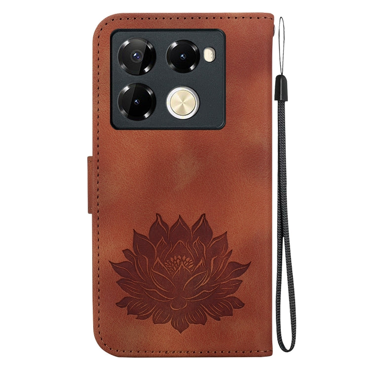 Funda de Cuero Infinix Note 40 Pro 4G / 5G con Relieve de Loto (Marrón)