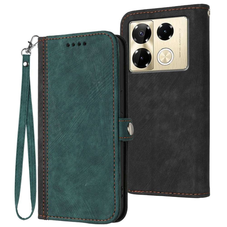 Pour Infinix Note 40 Pro 4G/5G Étui de téléphone en cuir avec dragonne à double pli et boucle latérale (vert foncé)