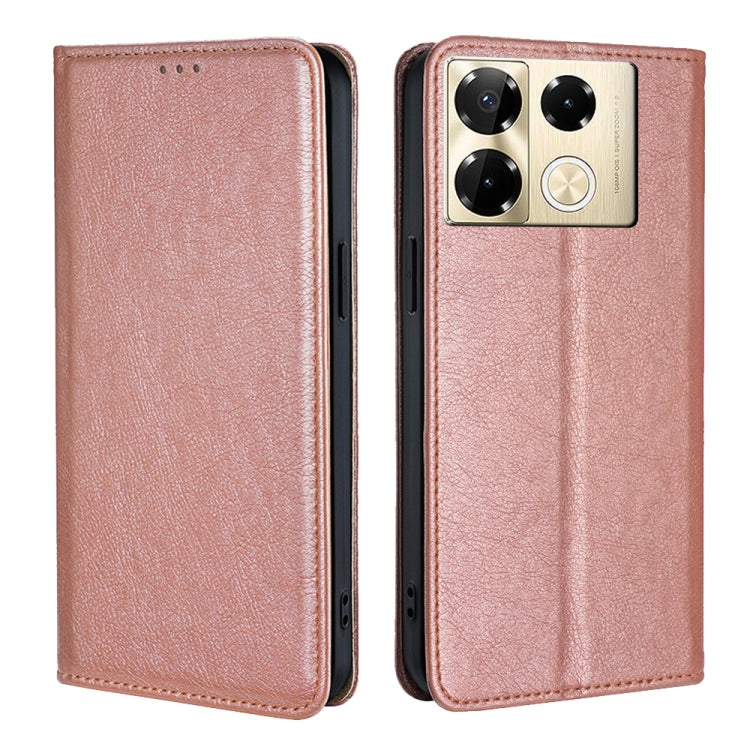 Estuche para Infinix Note 40 Pro 4G de Cuero Magnético con Aceite Brillante (Oro Rosa)