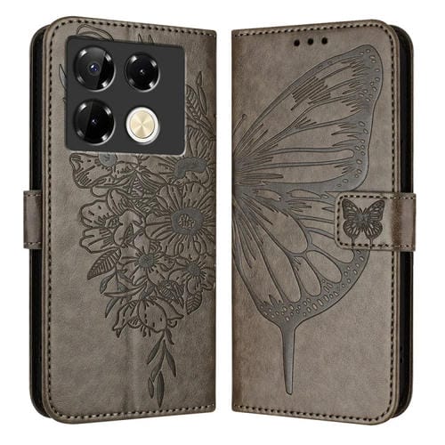 Funda de Cuero para Infinix Note 40 Pro 4G con Mariposa en Relieve (Gris)