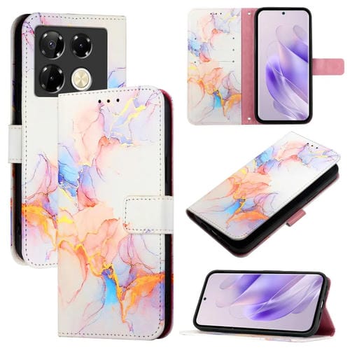 Funda de Cuero para Infinix Note 40 Pro 4G Pt003 con Tapa y Patrón Mármol (Galaxy Marble White)