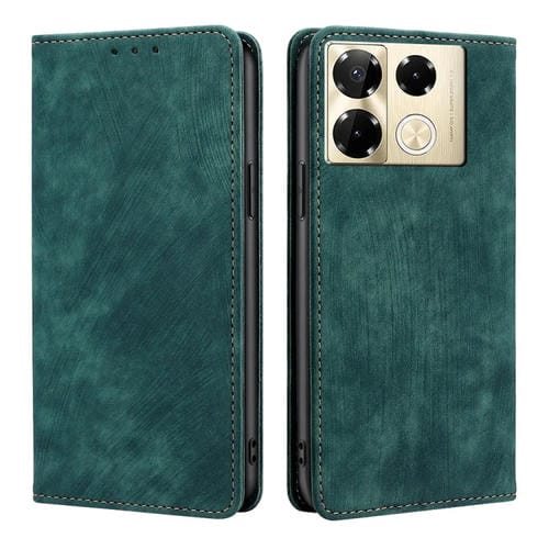 Funda de Cuero Magnética para Infinix Note 40 Pro 4G con Rfid y Cepillo Antirrobo (Verde)