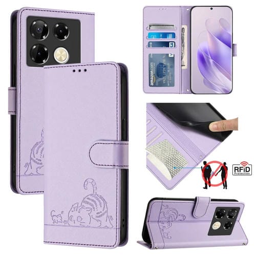 Funda para Infinix Note 40 Pro 4G X6850 Cuero Rfid Patrón En Relieve Cordón (Púrpura)