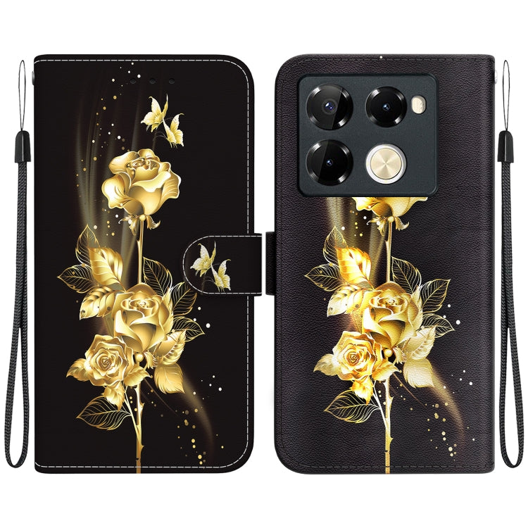 Funda de Cuero para Infinix Note 40 Pro 5G / 40 Pro 4G con Dibujo Coloreado y Textura de Cristal (Mariposa Dorada Rosa)