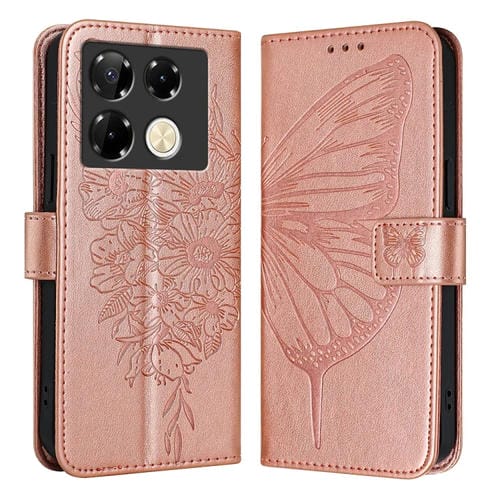 Funda de Cuero para Infinix Note 40 Pro 5G con Mariposa en Relieve (Oro Rosa)
