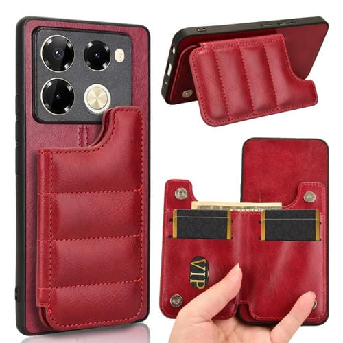Funda para Teléfono Infinix Note 40 Pro 5G con Bolsa para Tarjetas y Patrón de Vaca (Rojo)