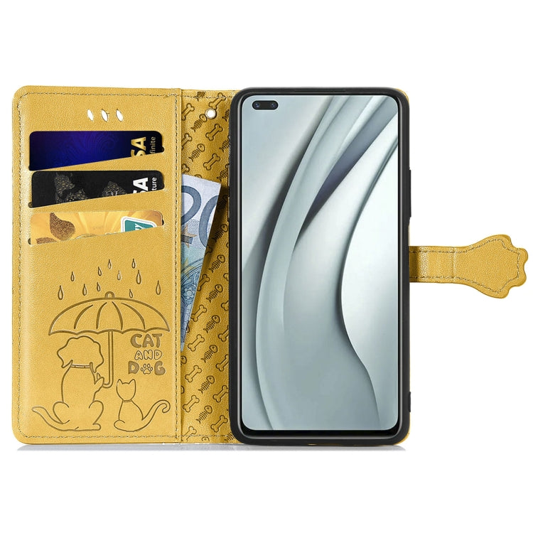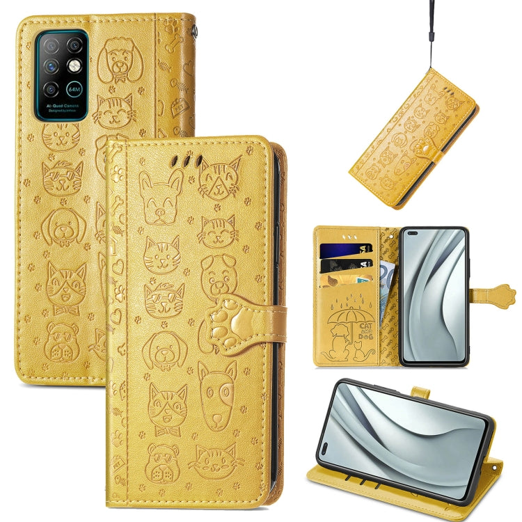 Funda de Cuero para Infinix Note 8 con Estampado de Gato y Perro, Soporte, Ranuras y Cordón (Amarillo)