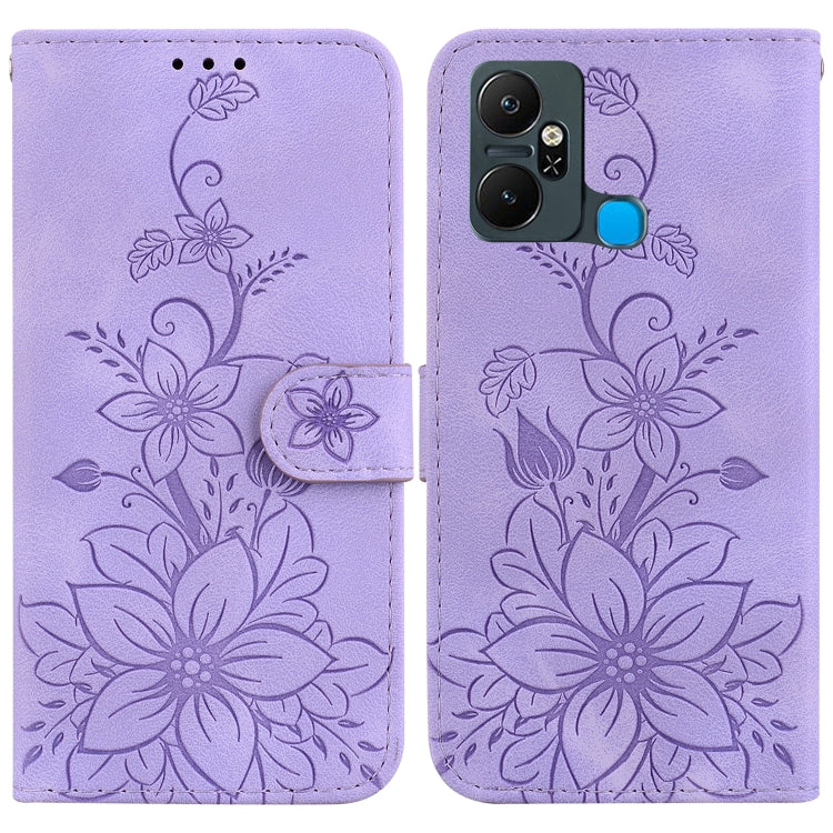 Funda de Cuero con Relieve Lily para Infinix Smart 6 Plus (Púrpura)