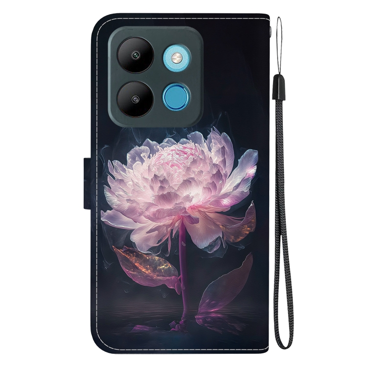 Funda de Cuero para Infinix Smart 7 con Dibujo Coloreado y Textura de Cristal (Peonía Púrpura)