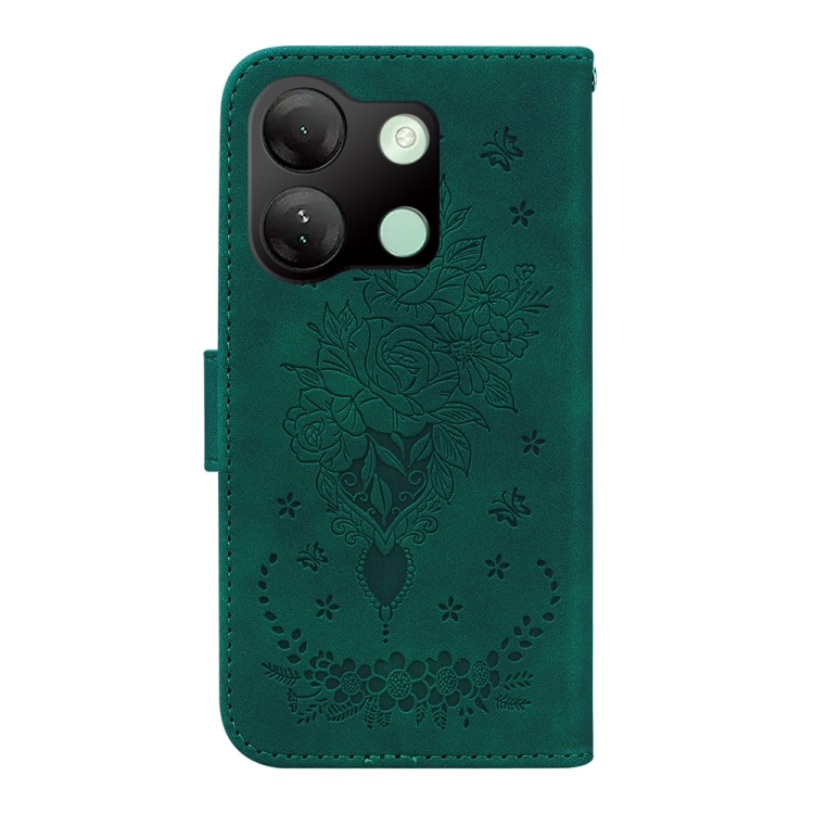 Funda de Cuero para Infinix Smart 7 HD Butterfly Rose en Relieve (Verde)