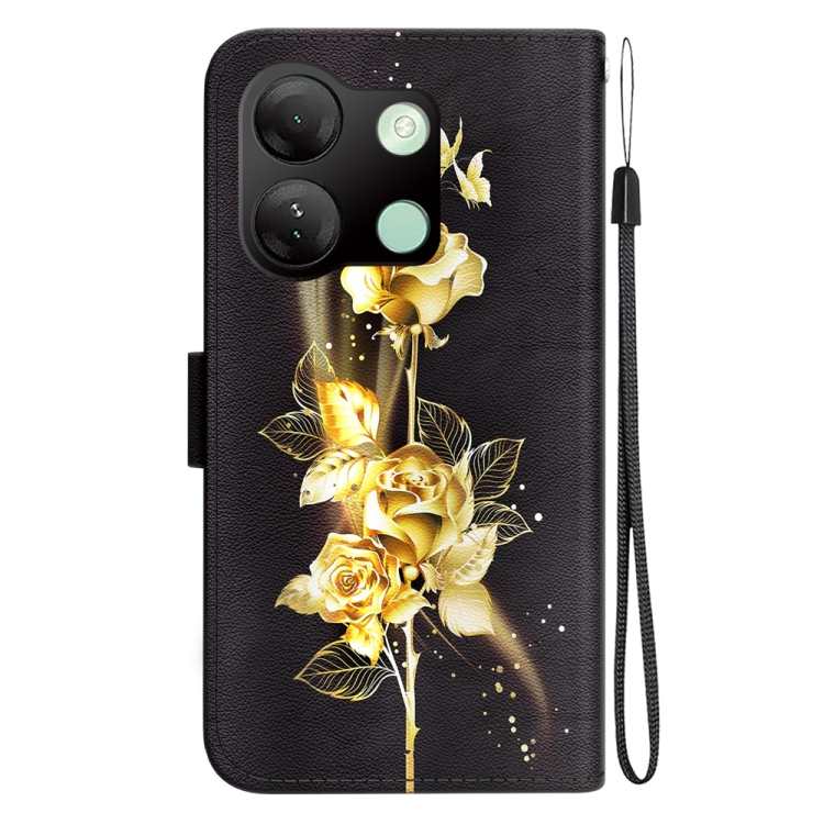 Funda de Cuero para Infinix Smart 7 HD con Dibujo Coloreado y Textura de Cristal (Mariposa Dorada Rosa)