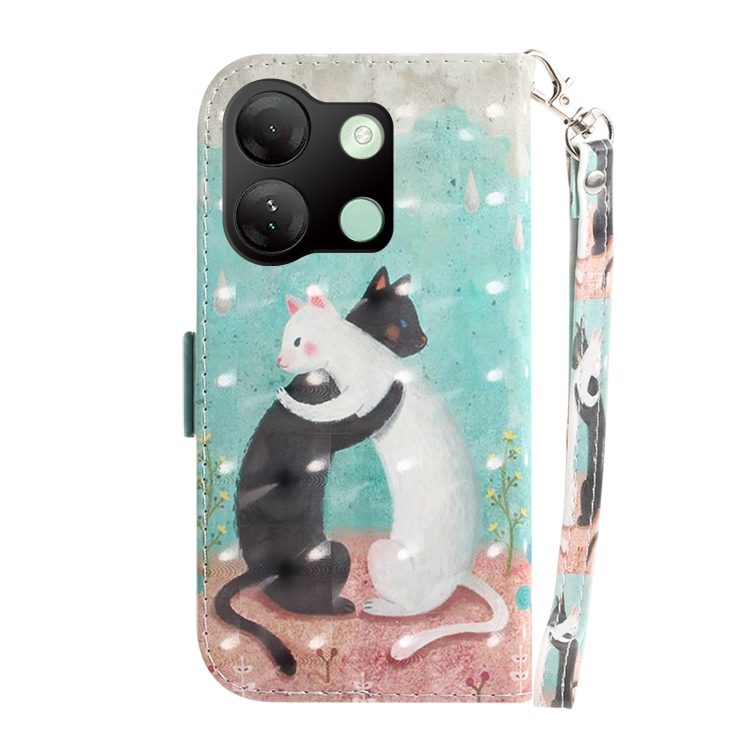 Funda de Cuero para Infinix Smart 7 HD con Tapa Horizontal y Diseño 3D (Gato Blanco y Negro)
