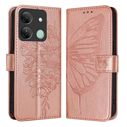 Funda para Teléfono Infinix Smart 7 India / 7 HD / 7 Plus Cuero Mariposa en Relieve (Oro Rosa)