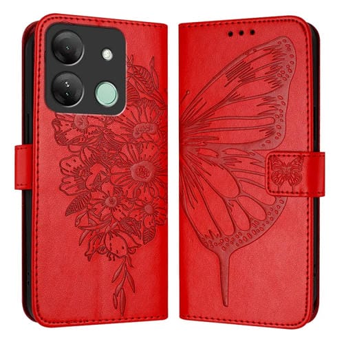 Funda de Cuero para Infinix Smart 7 India / 7 HD / 7 Plus con Mariposa en Relieve (Rojo)