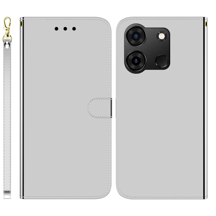 Estuche para Teléfono Infinix Smart 7 India y 7 Plus Cuero con Superficie de Espejo Imitado (Plata)
