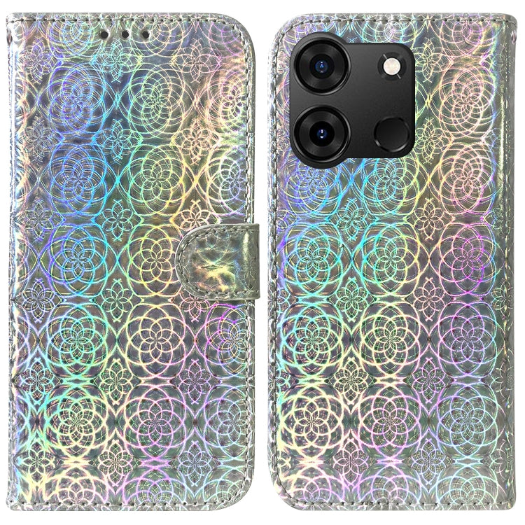 Funda de Cuero para Infinix Smart 7 India y 7 Plus con Hebilla Magnética Colorida (Plata)