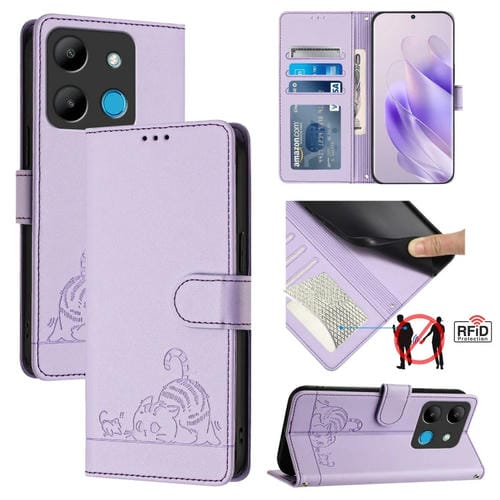Estuche para Teléfono Infinix Smart 7 X6515 Cuero RFID con Patrón en Relieve y Cordón (Púrpura)