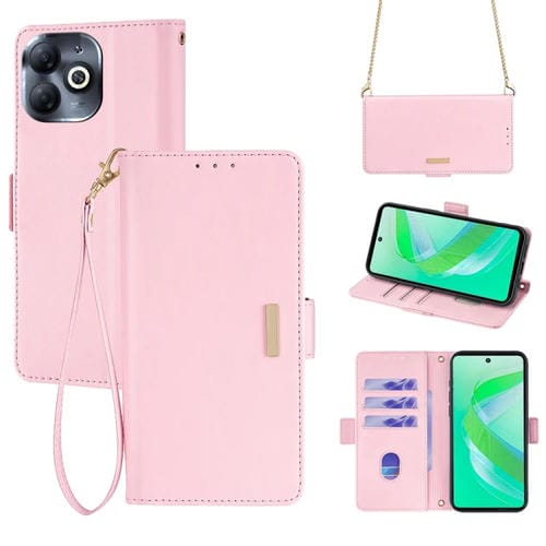 Funda de Cuero para Infinix Smart 8 4G con Cadena Cruzada (Rosa)