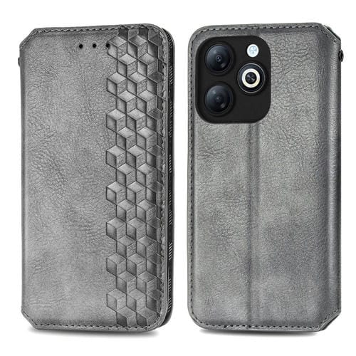 Funda de Cuero Magnético Prensado para Infinix Smart 8 Cubic Grid (Gris)