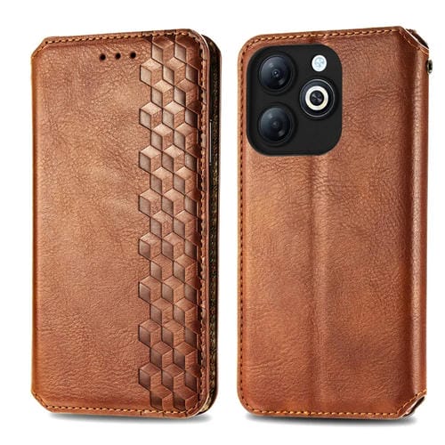 Funda de Cuero Magnético Prensado Cubic Grid para Infinix Smart 8 (Marrón)