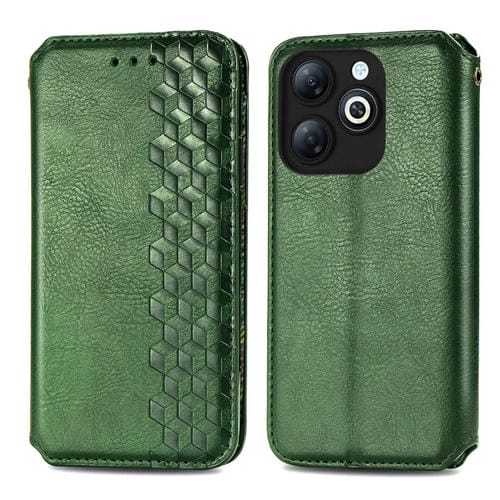 Funda de Cuero Magnético Prensado para Infinix Smart 8 Cubic Grid (Verde)