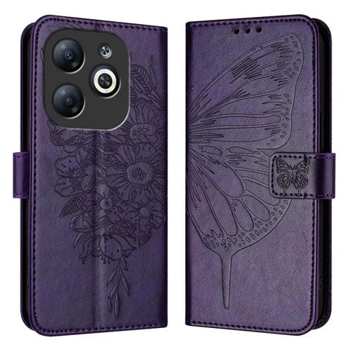 Funda de Cuero para Infinix Smart 8 con Mariposa en Relieve (Púrpura Oscuro)