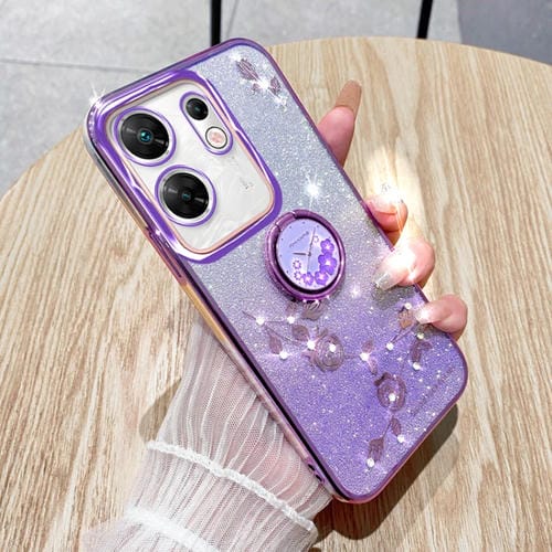 Estuche para Infinix Zero 30 4G con Anillo de Flor Inmortal y Brillo Degradado (Púrpura)