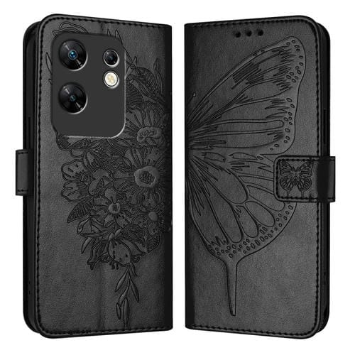 Funda de Cuero para Infinix Zero 30 4G con Mariposa en Relieve (Negro)