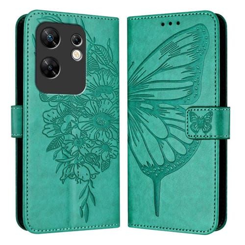 Funda de Cuero para Infinix Zero 30 4G con Mariposa en Relieve (Verde)