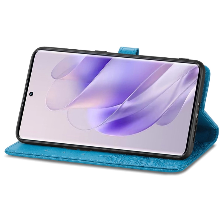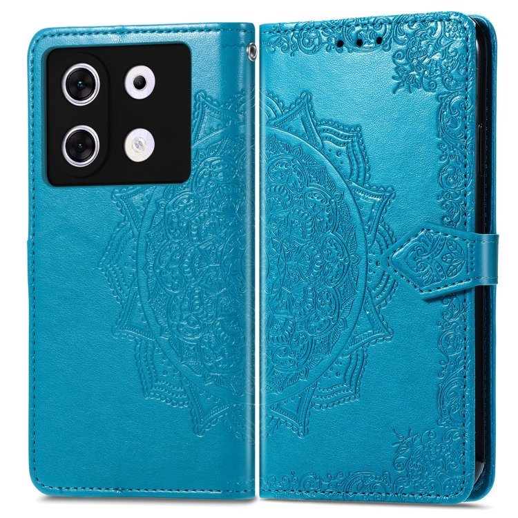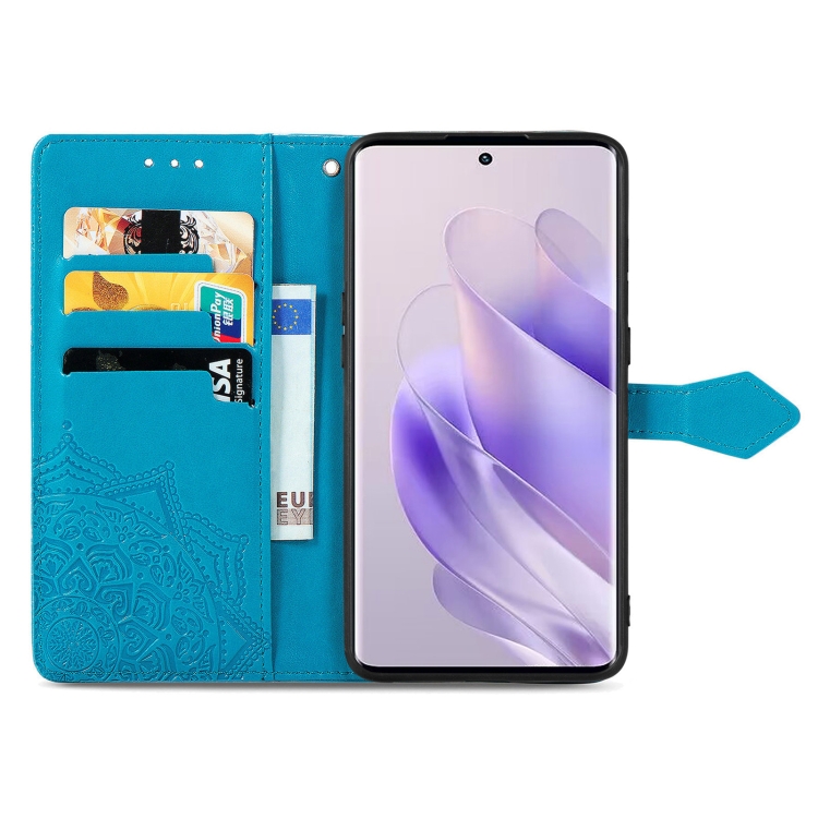 Funda de Teléfono Cuero para Infinix Zero 30 4G con Relieve Flor de Mandala (Azul)