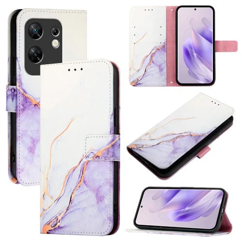 Funda de Cuero para Infinix Zero 30 4G Pt003 con Tapa y Patrón Mármol (Blanco y Morado)