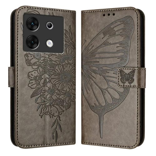Funda de Cuero para Infinix Zero 30 5G con Mariposa en Relieve (Gris)