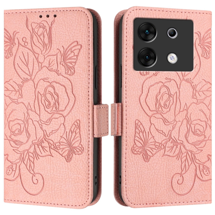 Funda de Cuero Antirrobo RFID para Infinix Zero 30 5G con Relieve (Rosa)